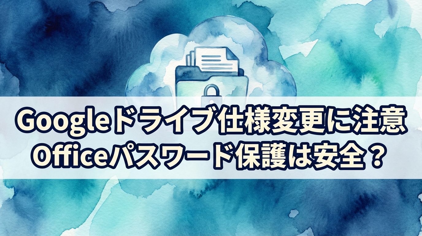 Googleドライブの仕様変更に関する話題が出ています。特に注意したいのが、WordやExcelなどのOfficeファイルを扱う際の「パスワード保護」の扱いです。