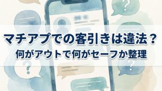 トレンド マチアプでの客引きは違法?何がアウトで何がセーフか整理 マッチングアプリでの客引きは違法?問題になるケースとセーフなケースを分かりやすく整理し、注意点を解説します。 2026.01.30 トレンド